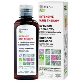 Elfa Pharm Intensive Hair Therapy Szampon łopianowy delikatnie i skutecznie oczyszcza skórę głowy i przygotowuje ją do maksymalnego przyjmowania substancji aktywnych. Skladniki aktywne pomagają wzmocnić wzrost włosów, odżywienie ich korzeni i pobudzenie odnowy. Poprawiają stan ich keratynowej struktury, chronią ją przed uszkodzeniami. Szampon, który stanowi doskonałą broń do walki z przedwczesnym wypadaniem włosów. Swoim działaniem wzmacnia pracę cebulek włosowych, aktywuje odnowę komórkową i syntezę kreatyny, łagodzi podrażnienia i zaczerwienienia. Włosy stają się miękkie, uelastycznione oraz pełne naturalnego blasku. Dodatkowo szampon ma działanie przeciwłupieżowe i łagodzące. Jest efektywny i nadaje się do codziennego użytku.